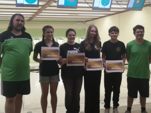 Seine Mannschaft wird ergänzt durch die Luftpistolen Schützin Melina Schneider (167 Ringe) aus der Eckersberger Schützengilde 1853 e.V. Neunkirchen, die Luftgewehrschützin Luisa Backes (188 Ringe) von Hubertus e. V. Eppelborn und die Luftgewehrschützin Leonie Klein (186 Ringe) aus Hubertus Rathen e. V.